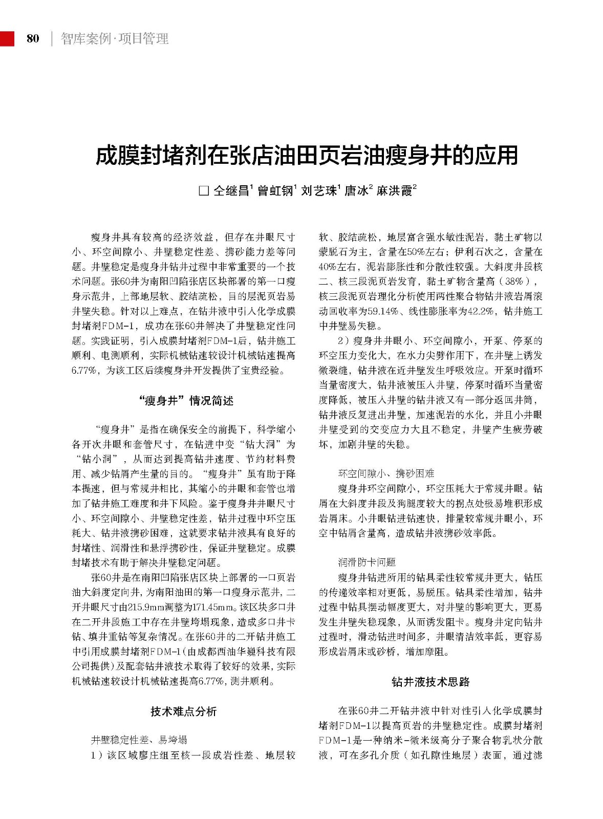 成膜封堵剂在张店油田页岩油瘦身井的应用