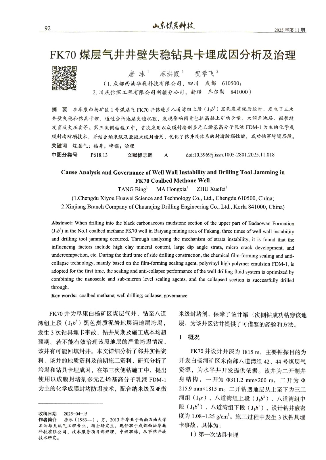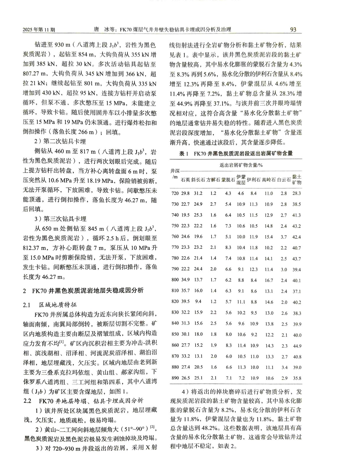 FK70 煤层气井井壁失稳钻具卡埋成因分析及治理