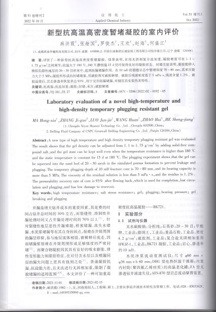 新型抗高温高密度暂堵凝胶的室内评价